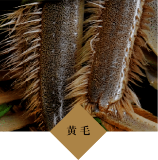 蟹脚上的须毛呈黄色,绒毛密集而柔软