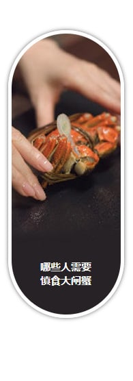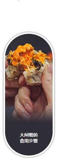 大闸蟹的肉和蟹黄富含维生素A和B,同时也富含蛋白质、钙和铁。然而,这个时令美食也含有极高的脂肪和胆固醇。虽然可能诱人一次性买很多在家享用,但最好还是要负责任和适度地品味——我们建议每人一餐最多享用一只大闸蟹 (六两重,或每只 280 克~300 克)。